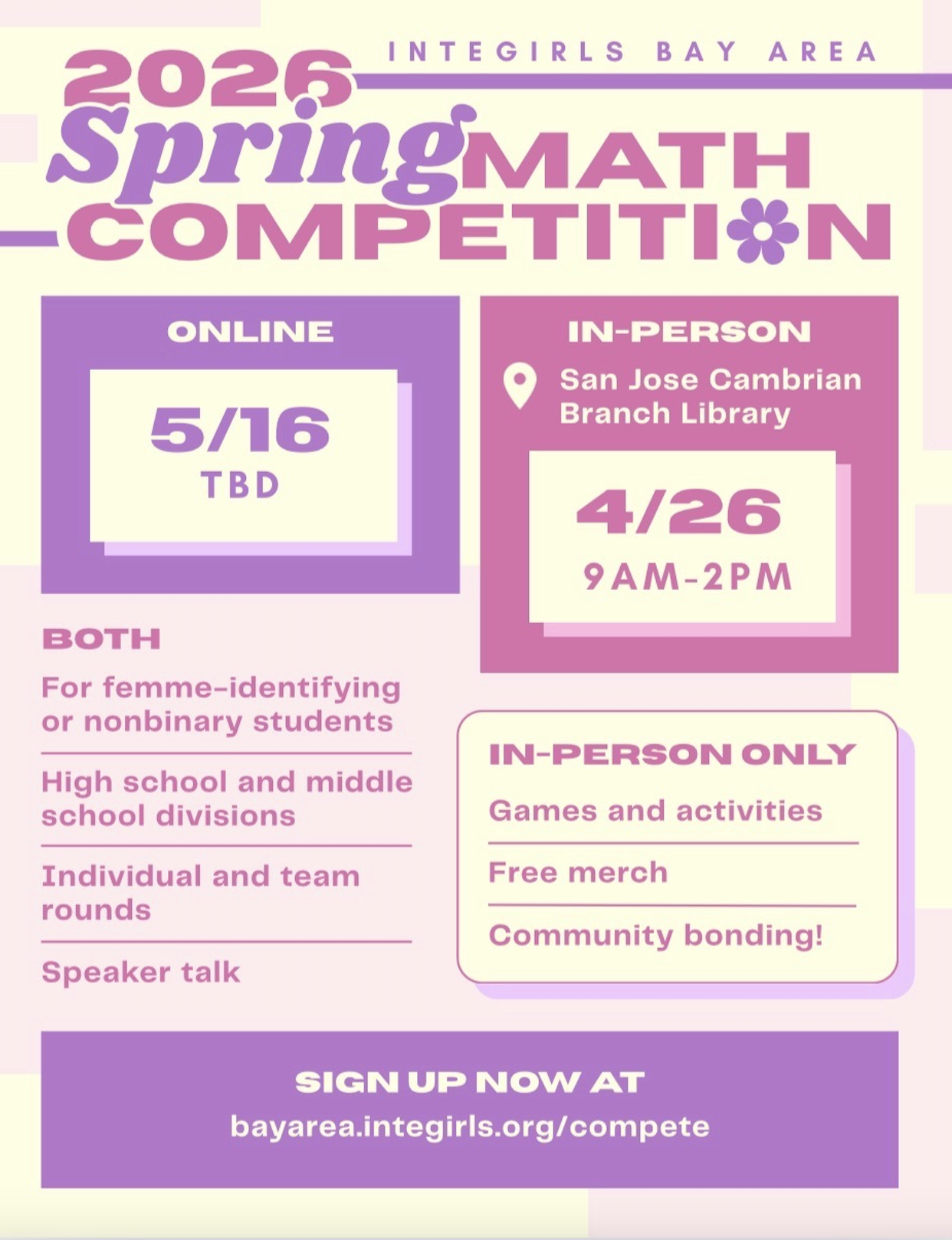 We also encourage students not only from the Bay Area to attend, but also other areas as well. INTEGIRLS Bay Area crafts our own problems for our competitions, so even if you attended an INTEGIRLS event by another chapter, our chapter will have completely different problems. You may sign up here.
